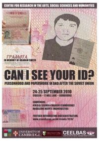 Человек и бумага, личность и документ, как наш общественный статус зависит от обладания материальными свидетельствами, выданными государством? Что может сказать об обществе организация “документирования” личности? Связь личности и документа в СССР и постсоветских обществах — тема междисциплинарной конференции, которая пройдет в Кембридже 24-25 сентября 2010 г.
