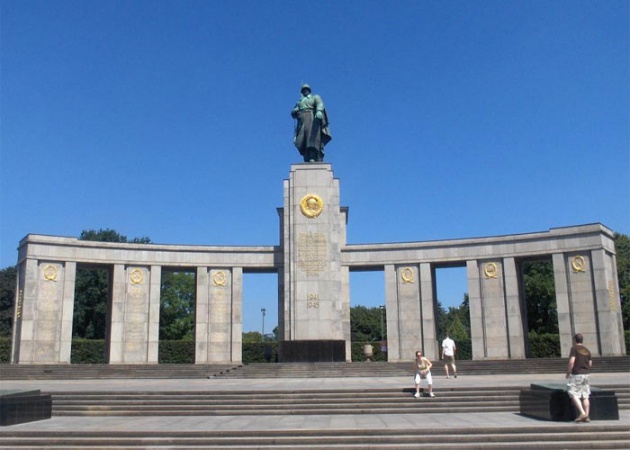 Монумент советским воинам в Шенхольцер-Хайде Кладбище в районе Панков. Сооружено в 1947-49 гг. Захоронено 13 тысяч советских солдат |