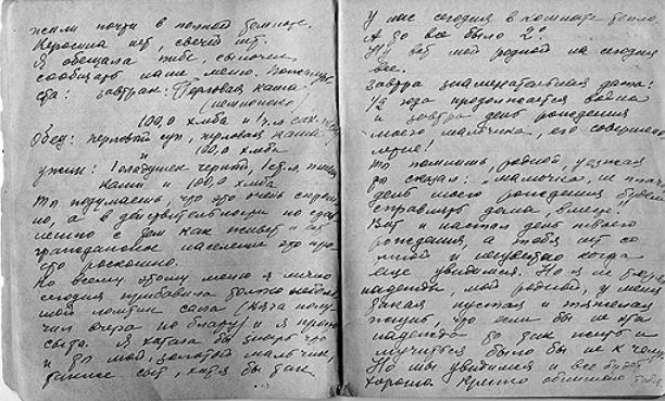 Первые записи появляются в декабре 1941-го, последние — в декабре 1942-го, когда мать добивается разрешения поехать к сыну. Журнал «Огонек» публикует отрывки из найденных дневников: