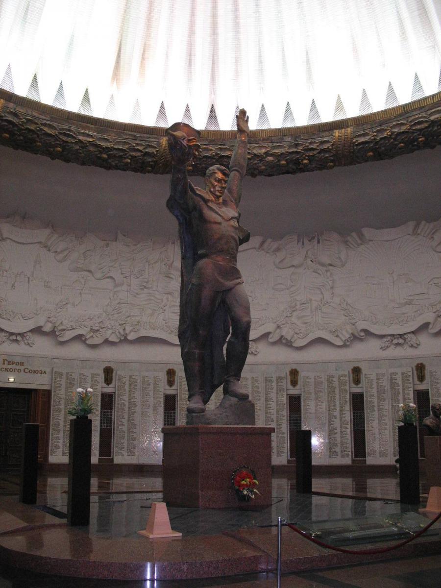 It is important that the memorial is devoted to the “Victory in the Great Patriotic War” namely (and not, for instance, to the studying of the phenomenon of the WW II) – this is reflected in the design and contents of the memorial space. The museum in general reiterates and confirms the Soviet myth about the war – for instance, a well-known in the previous epoch scenario is reproduced in the description of the military actions – thus museum space includes dioramas destined to illustrate the most important episodes of the war with the defense of Moscow, blockade of Leningrad, the Stalingrad battle, the Kursk Salient, the forcing of Dnieper, seizure of Berlin recognized as such. Despite the fact that the exhibition includes factographic material – arms, clothes, personal belongings of the war participants are exhibited, the life of the rear area is presented, etc. – a lot of attention is paid not only to the documentary evidence of the war years, but also to numerous forms of the representation of these events – philately, numismatics, fine arts …
