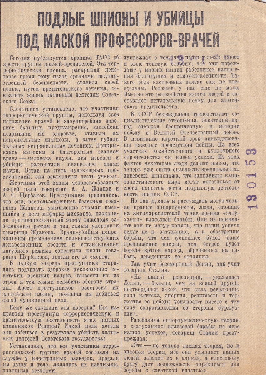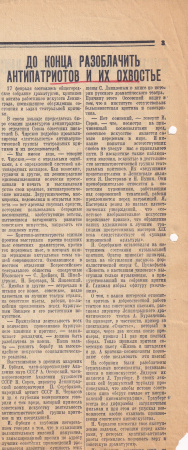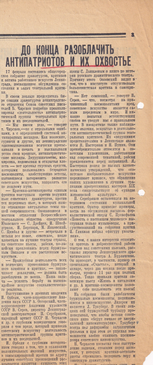 В этой же части экспозиции присутствуют материалы «несогласных» — связанные с судьбами С.Р. Хляп, С.П. Писарева и Э.Е. Фукс, которые отважились в письмах в адрес руководителей государства и газеты высказать свое возмущение антисемитской политикой, проводимой в стране. Хляп и Писарева после следствия направили на принудительное лечение в психиатрические лечебницы. Фукс получила 25-летний лагерный срок.