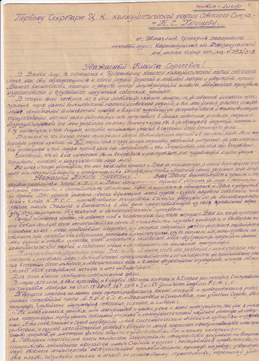 Послевоенная волна репрессий против евреев прошла по двум «направлениям». Одно было продолжением практик Большого террора — арестам подверглись бывшие члены небольшевистских еврейских партий. В экспозиции это случай А.А. Дасковского, бывшего члена сионистской организации. На выставке можно увидеть лагерный «сувенир», сделанный его руками, — домик, склеенный из спичек. Другое «направление» прямо вытекало из советской послевоенной политики государственного антисемитизма. Член Еврейского антифашистского комитета (ЕАК) Г.М. Жиц был приговорен в 1949 г. к 15 годам ИТЛ и умер в тюрьме. Его семья сохранила протокол обыска с перечисление изъятых на еврейские темы материалов. Пример другой судьбы — биография заместителя директора завода имени Сталина (ЗИС) Г.З. Шмаглита. Он был обвинен в 1951 году как участник еврейского заговора в автомобильной промышленности и приговорен к 25 годам заключения. В обширном письме, написанном в заключении (каллиграфическим почерком на 10 страницах) и адресованном Н.С.Хрущеву, он подробно описывает, как фабриковалось его обвинения в националистической деятельности. Судьба еще одного героя выставки — это история студента А.Е Фельдмана, любителя рассказывать еврейские анекдоты, приговоренного к 25 годам каторжных работ по обвинению не только в «еврейском национализме», но и в терроризме. (Пройдут десятилетия, и Фельдман станет одним из руководителей Московского «Мемориала»).